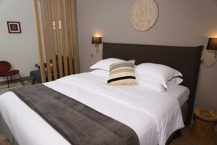 Lorsque vous entrez dans la chambre, vous serez immédiatement captivé par la décoration discrète et raffinée qui s’inspire de l’Afrique des safaris Kenyan. Les tons chaleureux et les motifs subtils rappellent les paysages envoûtants de cette région.