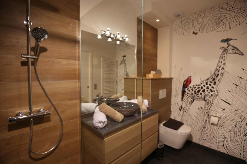 La salle de bain privative est équipée d’une douche à l’italienne, pour une expérience de détente supérieure. Les produits cosmétiques bio labellisés « Nature et Progrès » sont soigneusement sélectionnés pour vous offrir une routine de soins respectueuse de votre peau et de l’environnement.