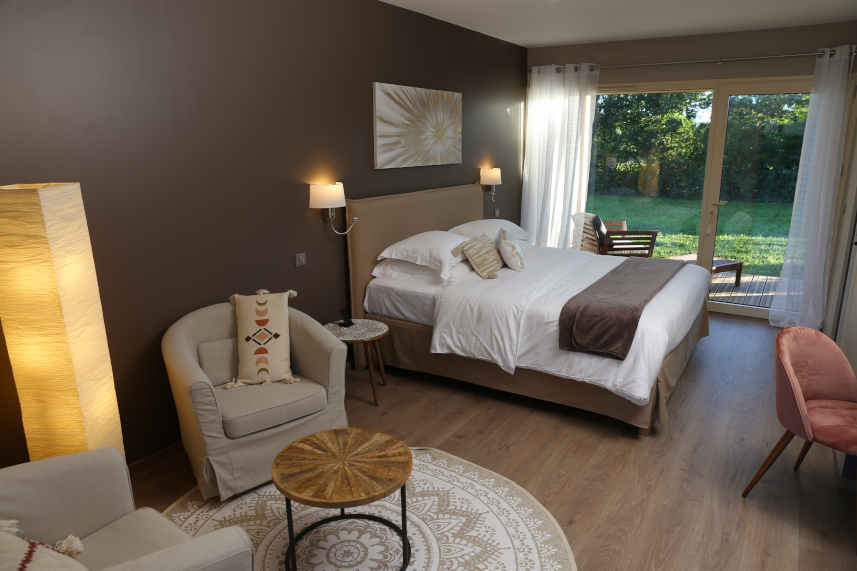 The Ginkgo room invites you to follow the rhythm of this tree’s growth and enjoy the passing of time, whether in its indoor living room or on the private terrace facing south and facing the garden.